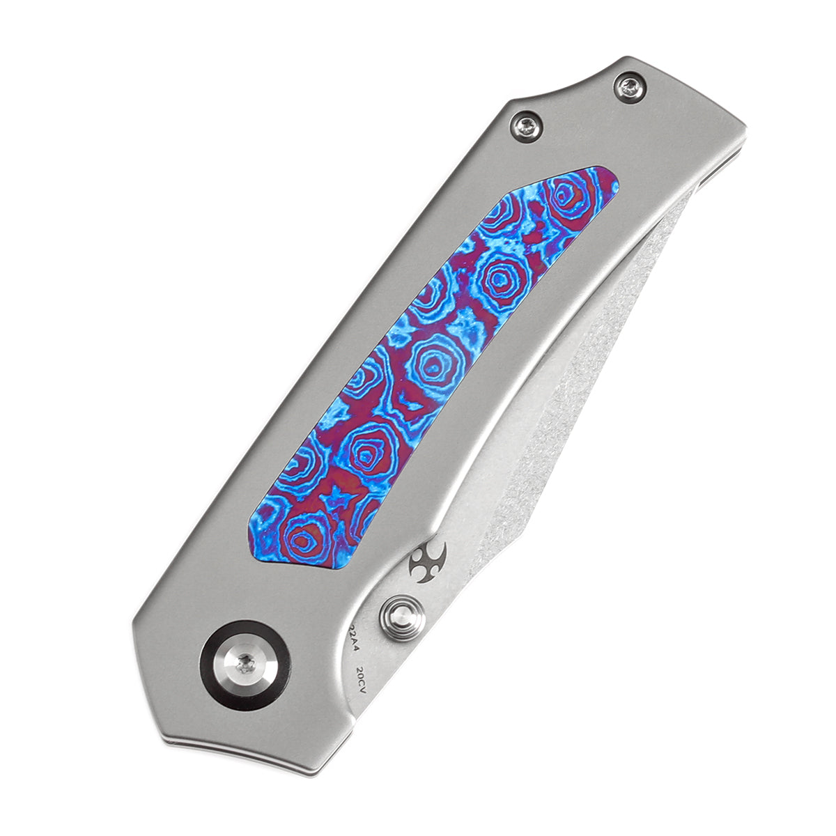 刀柄采用双材料设计,无缝结合钛金属和碳纤维或 Timascus 镶嵌物。这种优质材料的混合物不仅提升了视觉吸引力,还改善了刀具的人体工程学感,为其整体结构增添了额外的奢华和精致感。
