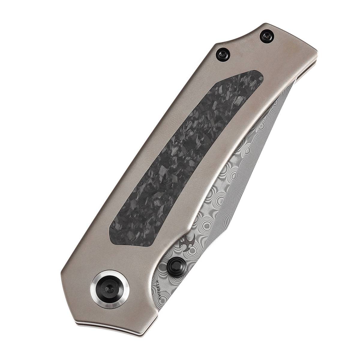 刀柄采用双材料设计,无缝结合钛金属和碳纤维或 Timascus 镶嵌物。这种优质材料的混合物不仅提升了视觉吸引力,还改善了刀具的人体工程学感,为其整体结构增添了额外的奢华和精致感。