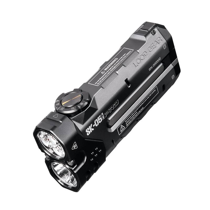 2. **高亮度输出**:SK05 Pro的最大输出亮度可达4360流明,其中聚光模式下为1300流明,泛光模式下为3060流明(冷白版本)或2550流明(中白版本)。