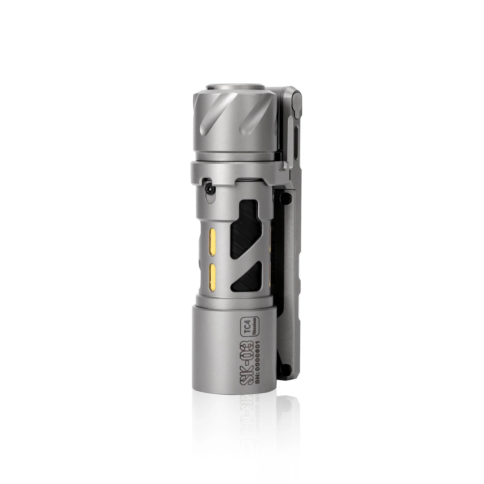 6. **磁吸与多功能夹子**:SK03 Pro配置有锌合金夹子和普通不锈钢夹子供选择,锌合金夹子设计有磁铁,可以实现吸附功能,在特殊的场景下可吸附于铁质物体照明,并且夹子可以实现225度上下多角度调整,能实现多方位照明,释放你的双手。