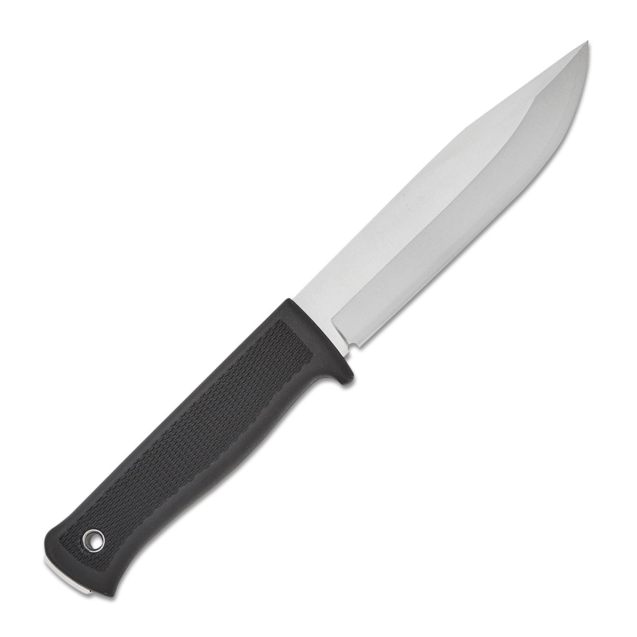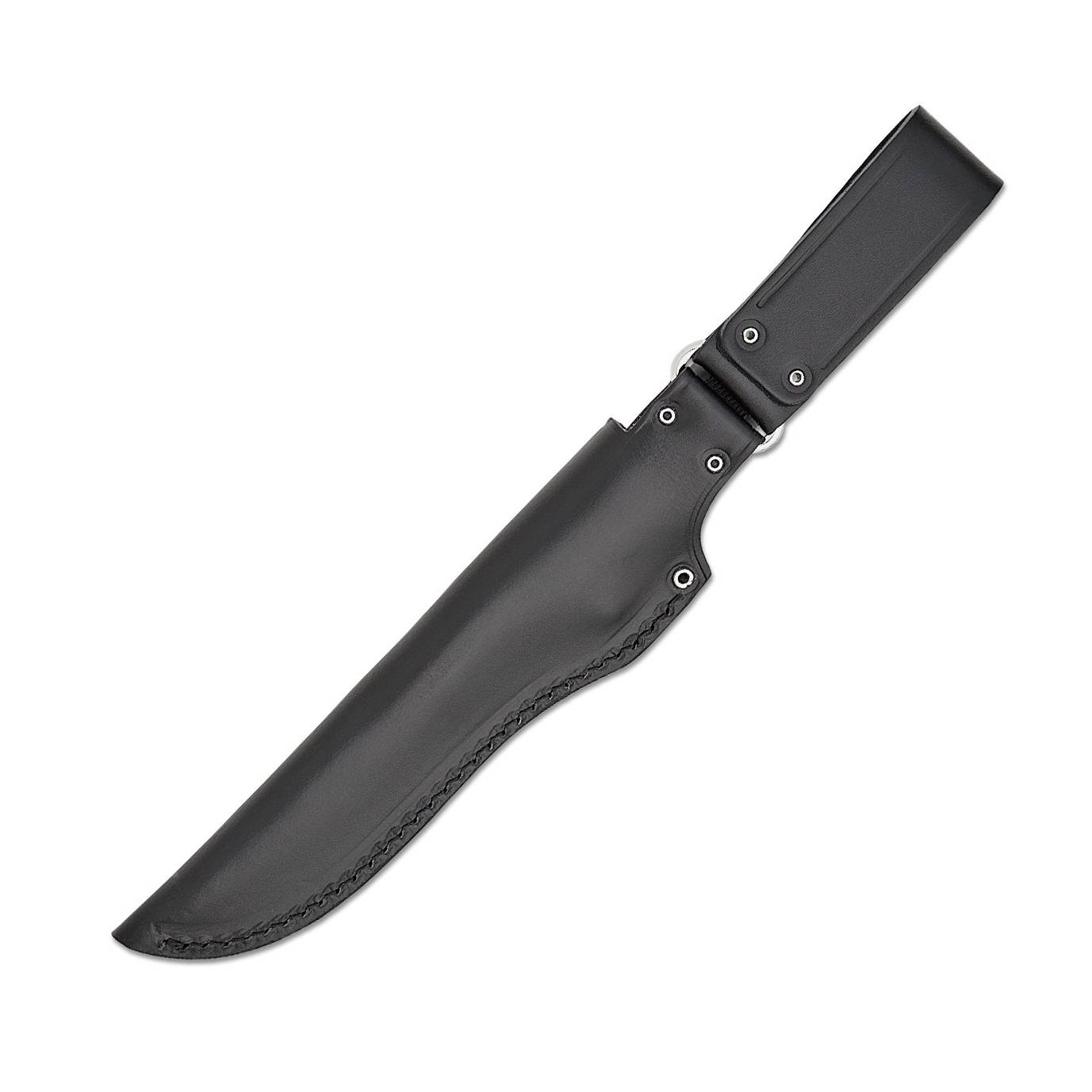 格纹手柄即使在手冷或湿的情况下也能提供良好的抓握力。根据您的需要,您可以选择两种类型的刀鞘,一种是采用厚实的黑色皮革制成的开放式悬垂式刀鞘,另一种是手柄周围带有按扣的 Zytel 刀鞘。