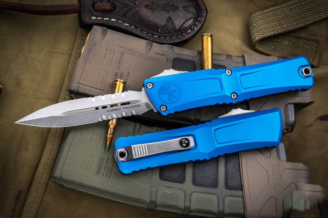 自推出以来,Microtech Combat Troodon 一直深受执法部门、美国武装部队和急救服务人员的喜爱。我们最受欢迎的耐用 OTF 经过重新设计,为实用重型自动刀树立了新标准。最新的 Combat Troodon 采用了我们新的双传动系统,可在紧急情况下轻松部署,并且易于用户拆卸。增强 的按钮口袋设计可最大限度地减少摩擦并有助于有效清除碎屑,从而减少频繁维护和清洁的需要。 刀身上的锯齿和凹槽可提供出色的抓握力,而带有陶瓷止动器的新型钛制口袋夹可确保安全性和可访问性。Combat Troodon 将自动刀的所有优点与 Microtech 传奇般的可靠性相结合,使其成为任何勤务携带的完美选择。