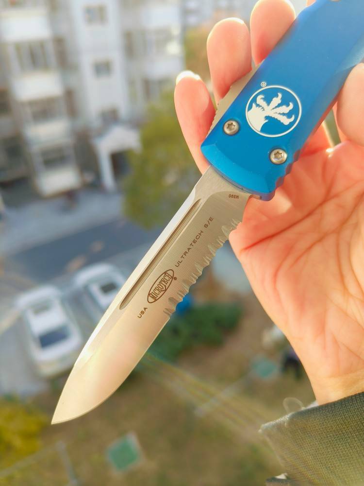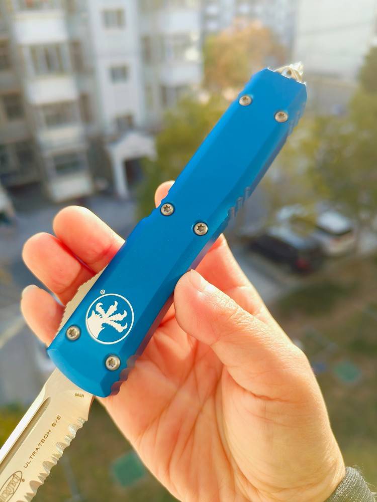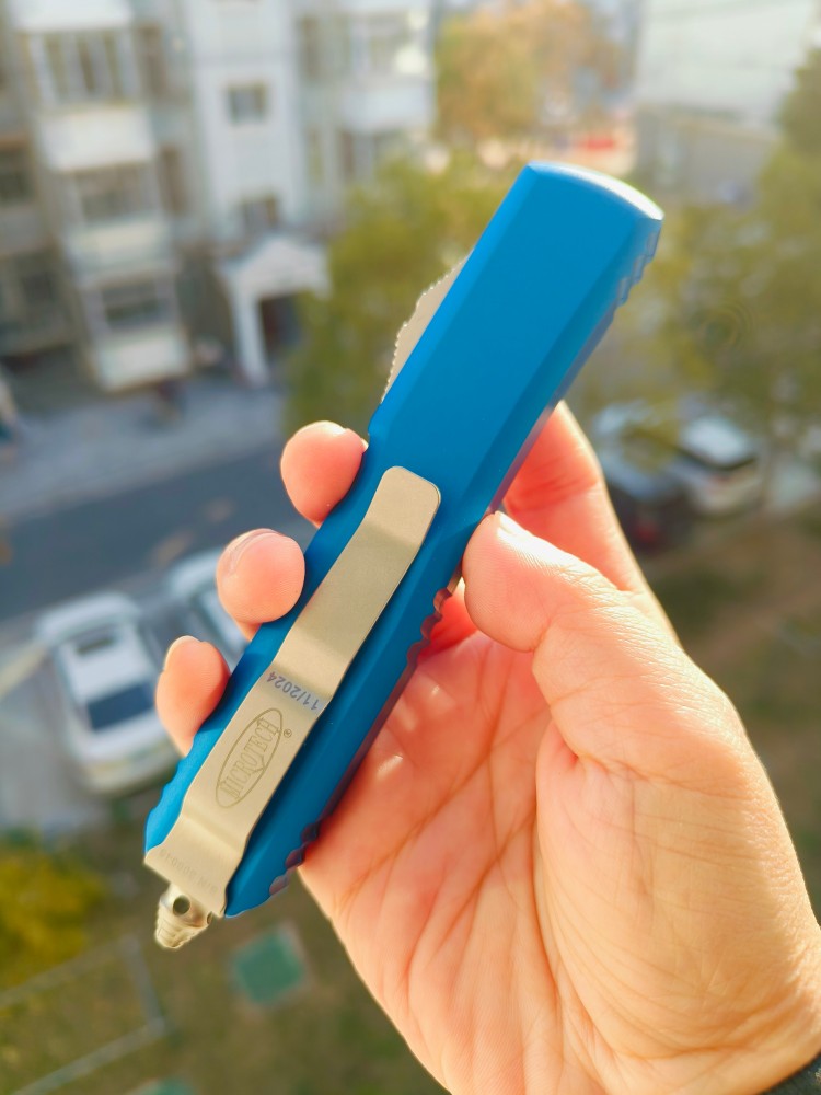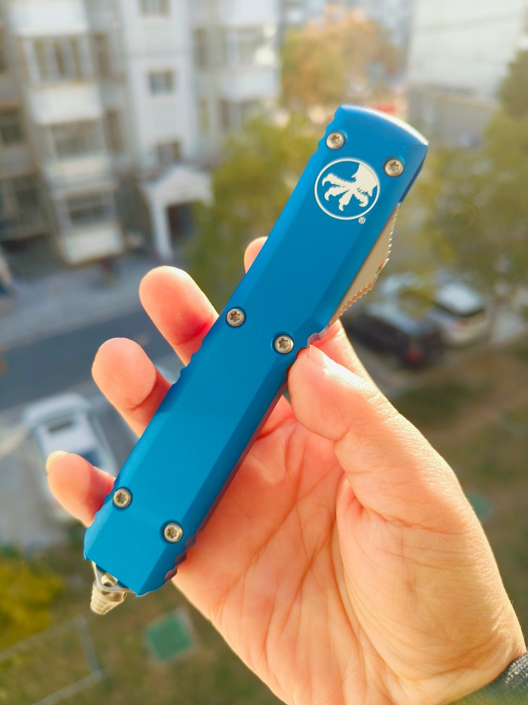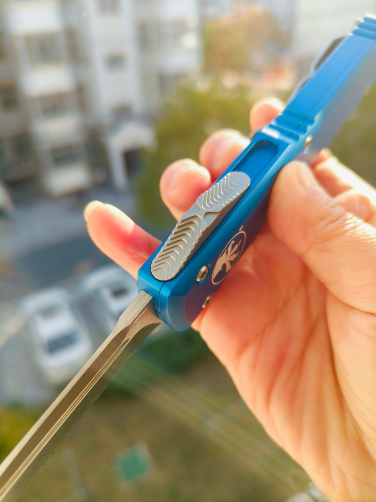 As the flagship model of the Microtech® OTF lineup, the Ultratech® sets the standard for Out-The-Front technology. Proprietary design allows the firing spring to be at rest in both the open and closed positions, drastically reducing wear on the internal firing mechanisms. The contoured chassis handle provides a lighter and more ergonomic feel and comes in a smooth, flat finish.