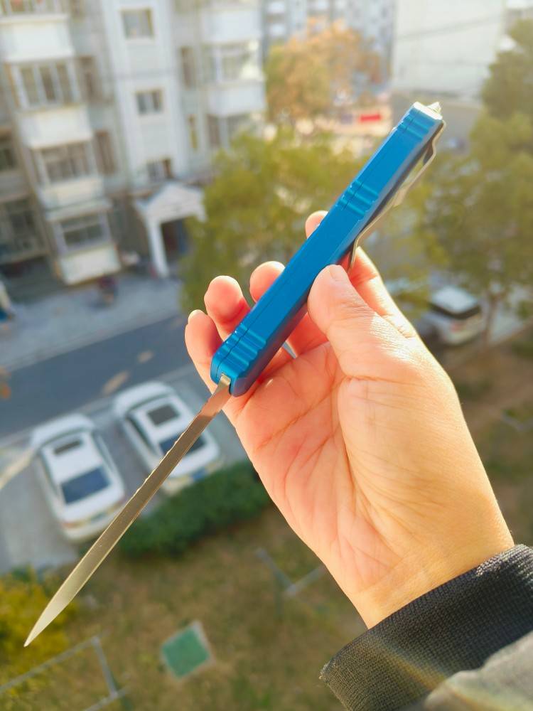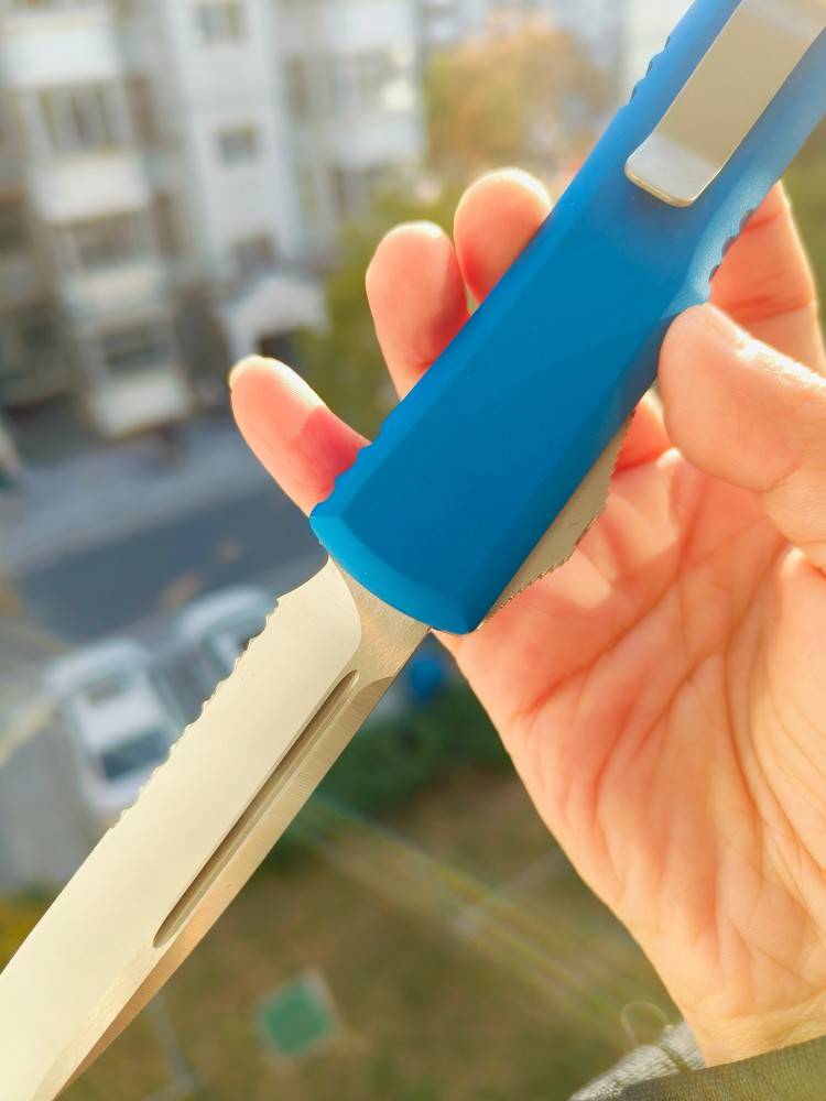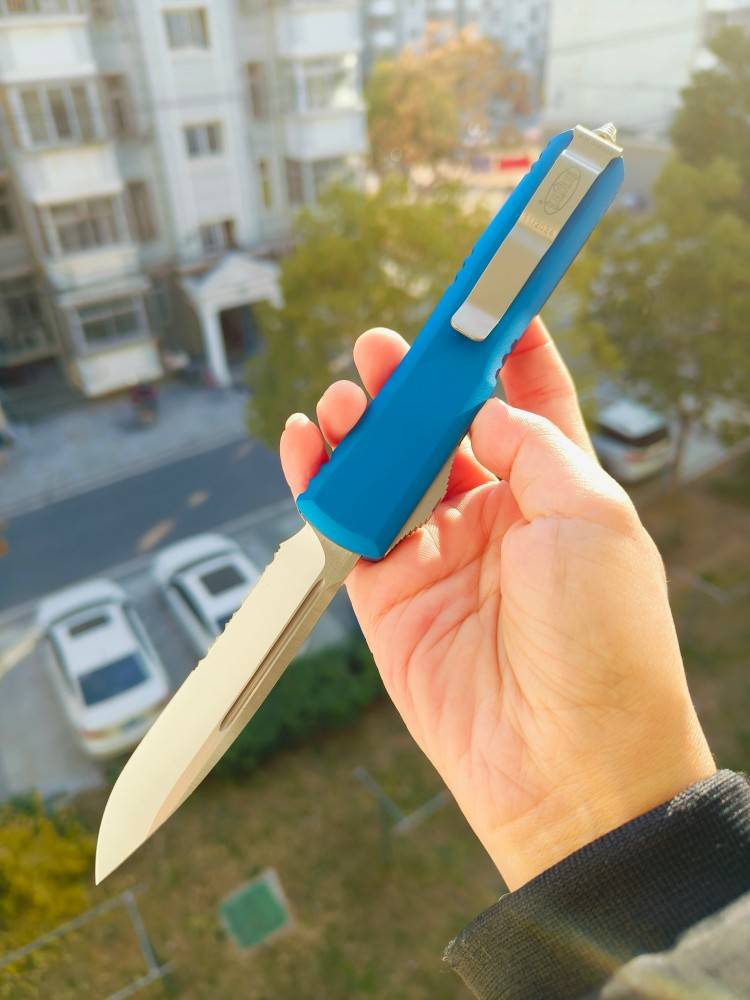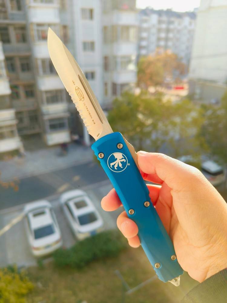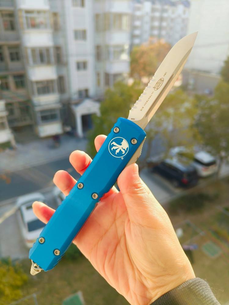 As the flagship model of the Microtech® OTF lineup, the Ultratech® sets the standard for Out-The-Front technology. Proprietary design allows the firing spring to be at rest in both the open and closed positions, drastically reducing wear on the internal firing mechanisms. The contoured chassis handle provides a lighter and more ergonomic feel and comes in a smooth, flat finish.
