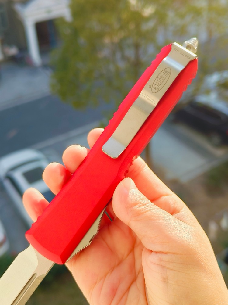 Ultratech是Microtech的原创双动前开式刀具,也是我们整个OTF系列的基础。多年来,它经历了多次改进,每次都变得更加高效和可靠。Ultratech的弹簧始终处于“静止”位置,除非展开时。这确保压缩弹簧不会疲劳,确保用户在发射刀具时能够有效操作。Ultratech可以采用多种不同的形式;它可以采用标准加工铝制顶部或碳纤维片。Ultratech 重量轻、单手开合、外形纤薄、刀片锋利,使其成为独一无二的刀具,只有Microtech才能提供。这把刀已经一次又一次地证明它可以承受任何障碍。只有时间才能告诉我们 Ultratech 系列的下一步将是什么。