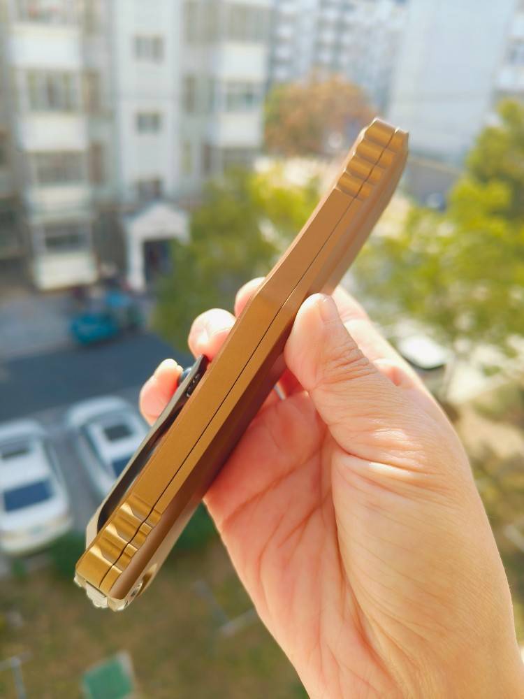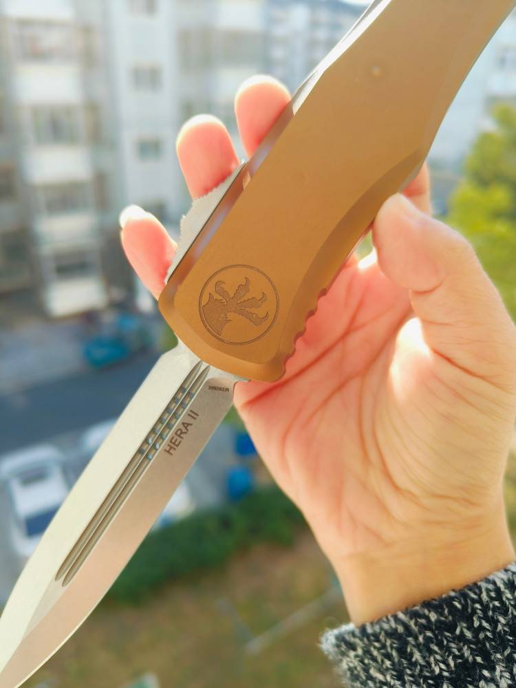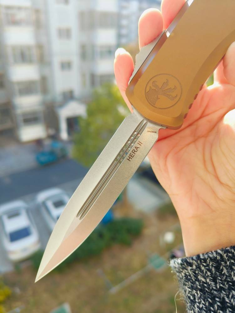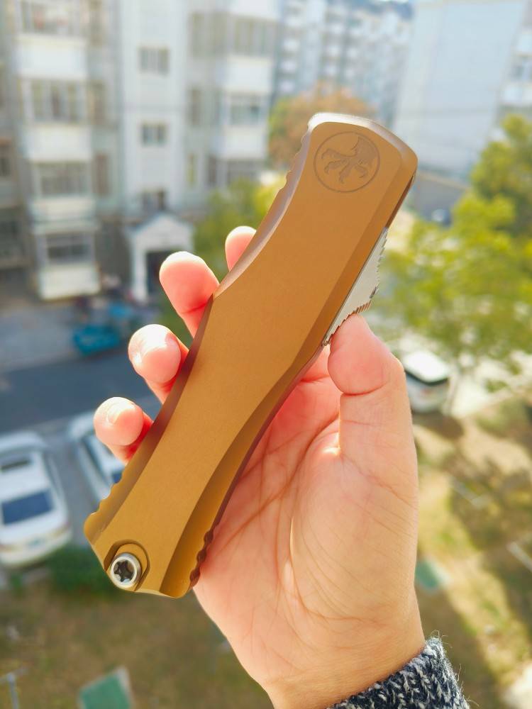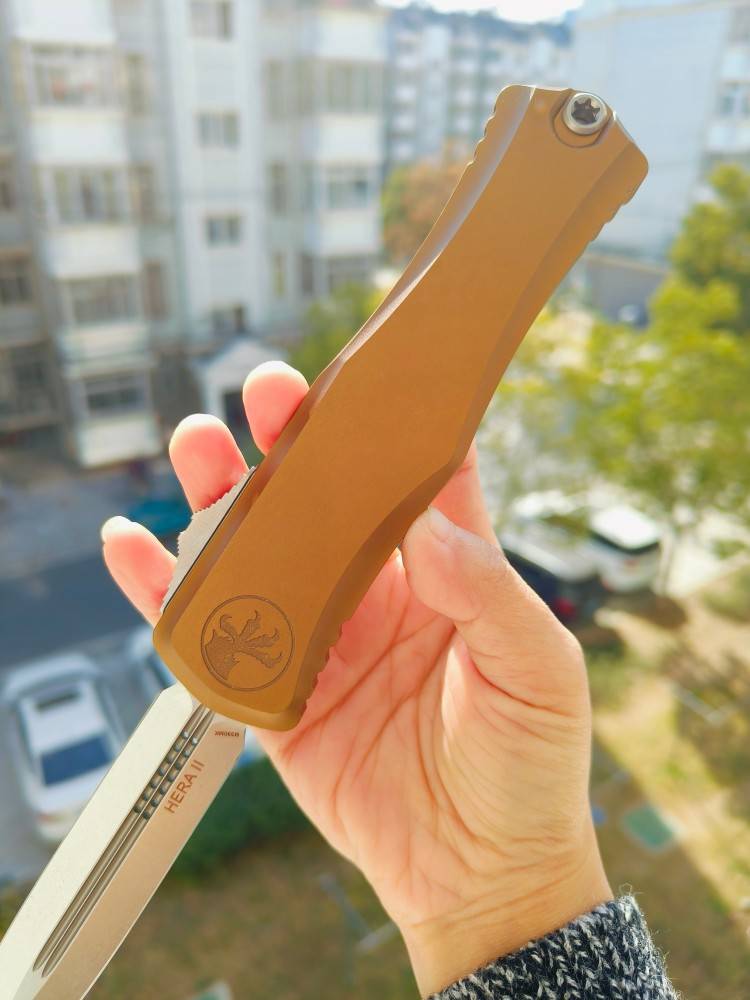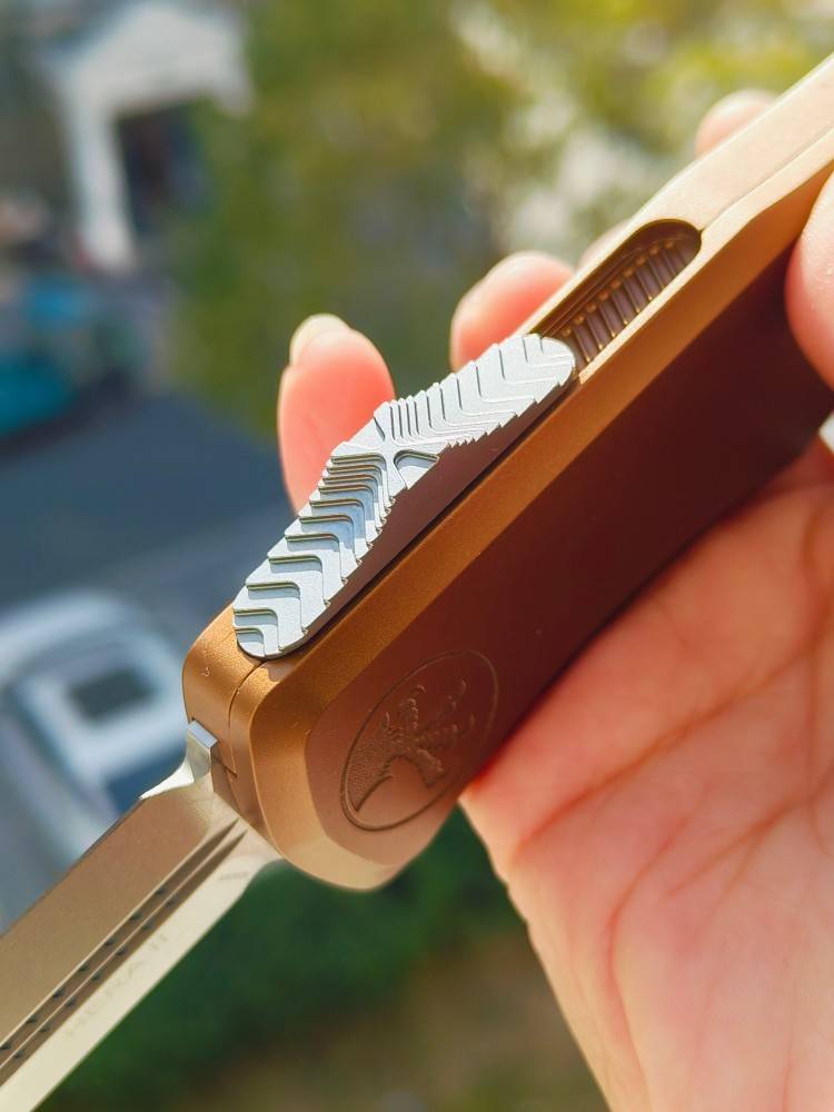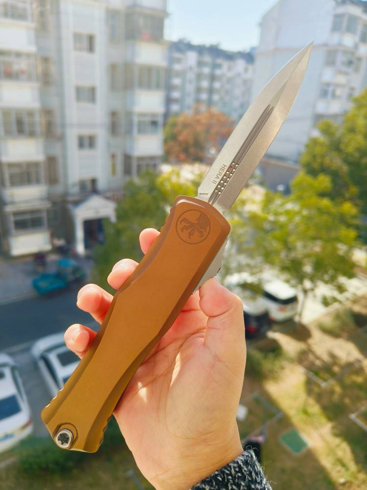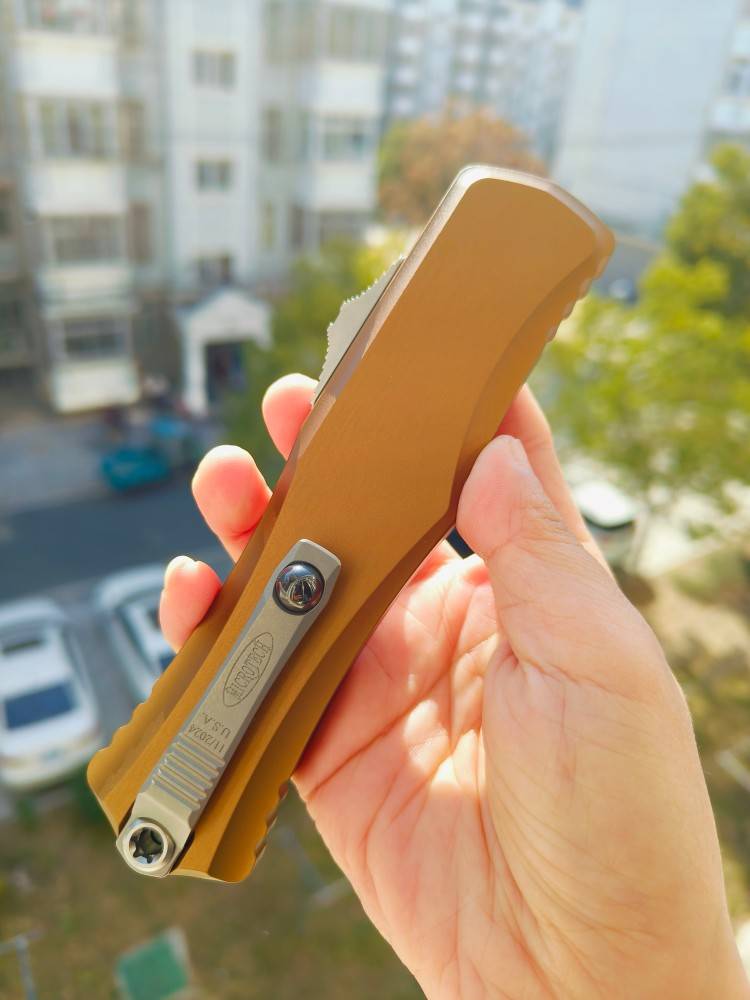 • 刀片长度:10.16 厘米(4.00 英寸),石洗处理的 D/E M390MK 刀片,刃口长度为 9.6875 厘米(3.8125 英寸)。 • 总长度:23.8125 厘米(9.375 英寸)。 • 重量:139 克(4.9 盎司)。 • 硬件采用石洗处理。 • 手柄为米色阳极氧化铝材质。 • 采用自动弹出机制。 • 设有挂绳孔。 • 尾部带有破窗器。 • 配备石洗钢材质的背夹,带有陶瓷滚珠