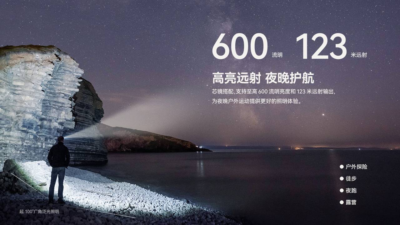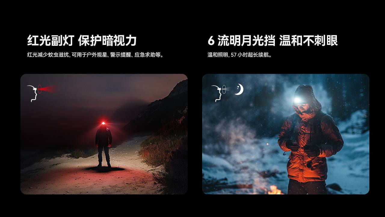 - 配备红色辅灯,具有保护暗视力的效果,可减少蚊虫滋扰,能用于户外观星、警示提醒、应急求助等。