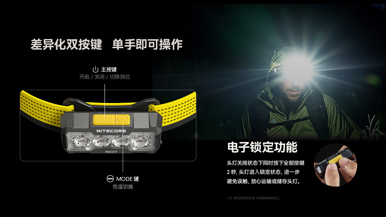 NU27 头灯以其轻量便携、多色温设计和实用的功能,适用于夜跑、夜爬、露营、徒步等各种夜户外场景。