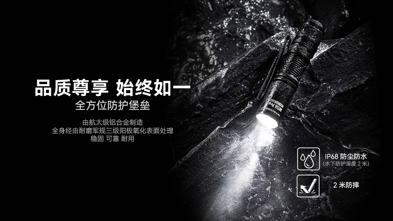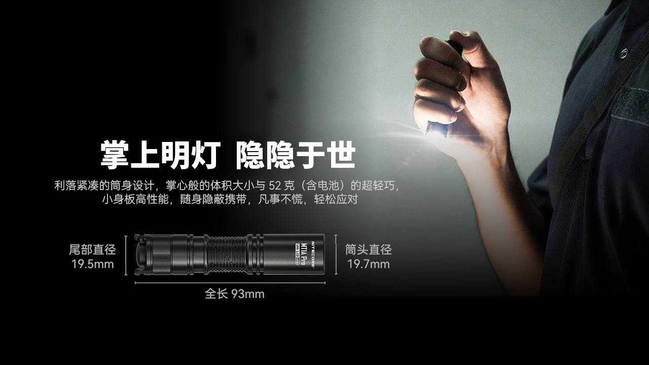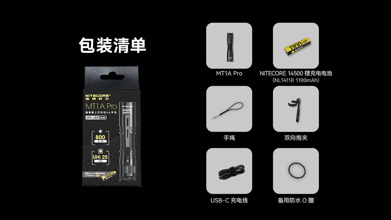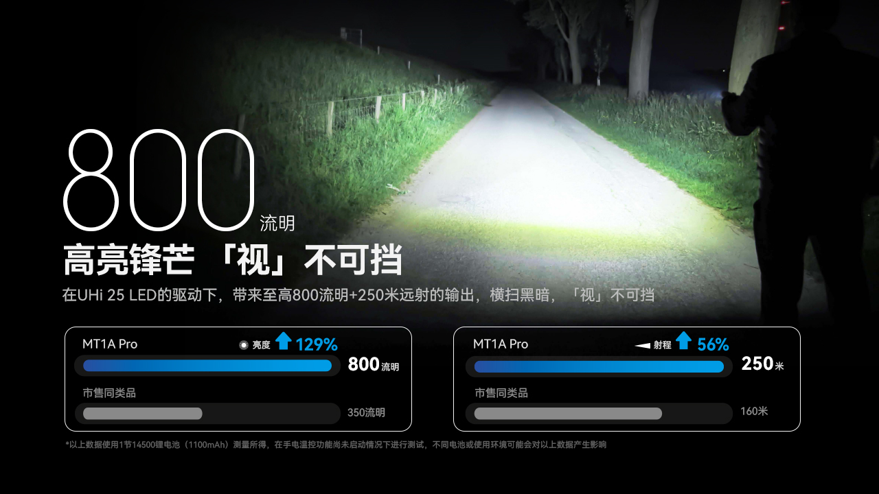 - 高亮度输出:首发搭载 NiteLab UHi 25 LED,最高可输出 800 流明的强光,能够在黑暗环境中提供清晰、明亮的照明,最大射程可达 250 米(273 码),峰值光强为 15700 坎德拉,具有出色的远射能力,无论是户外探险、夜间巡逻还是日常使用,都能满足对亮度和射程的需求。