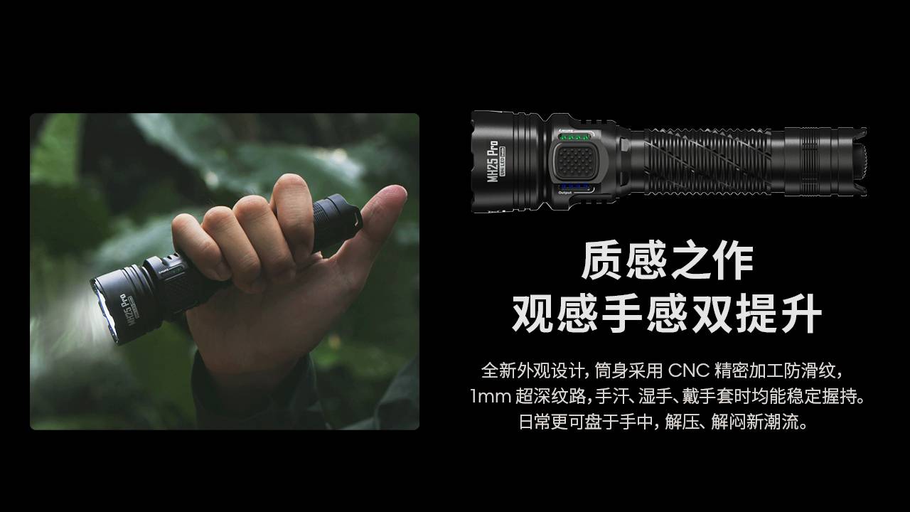 - 舒适的握持设计:筒身采用 CNC 精密加工防滑纹,纹路深度达 1mm,无论是手汗、湿手还是戴手套的情况下,都能稳定握持。