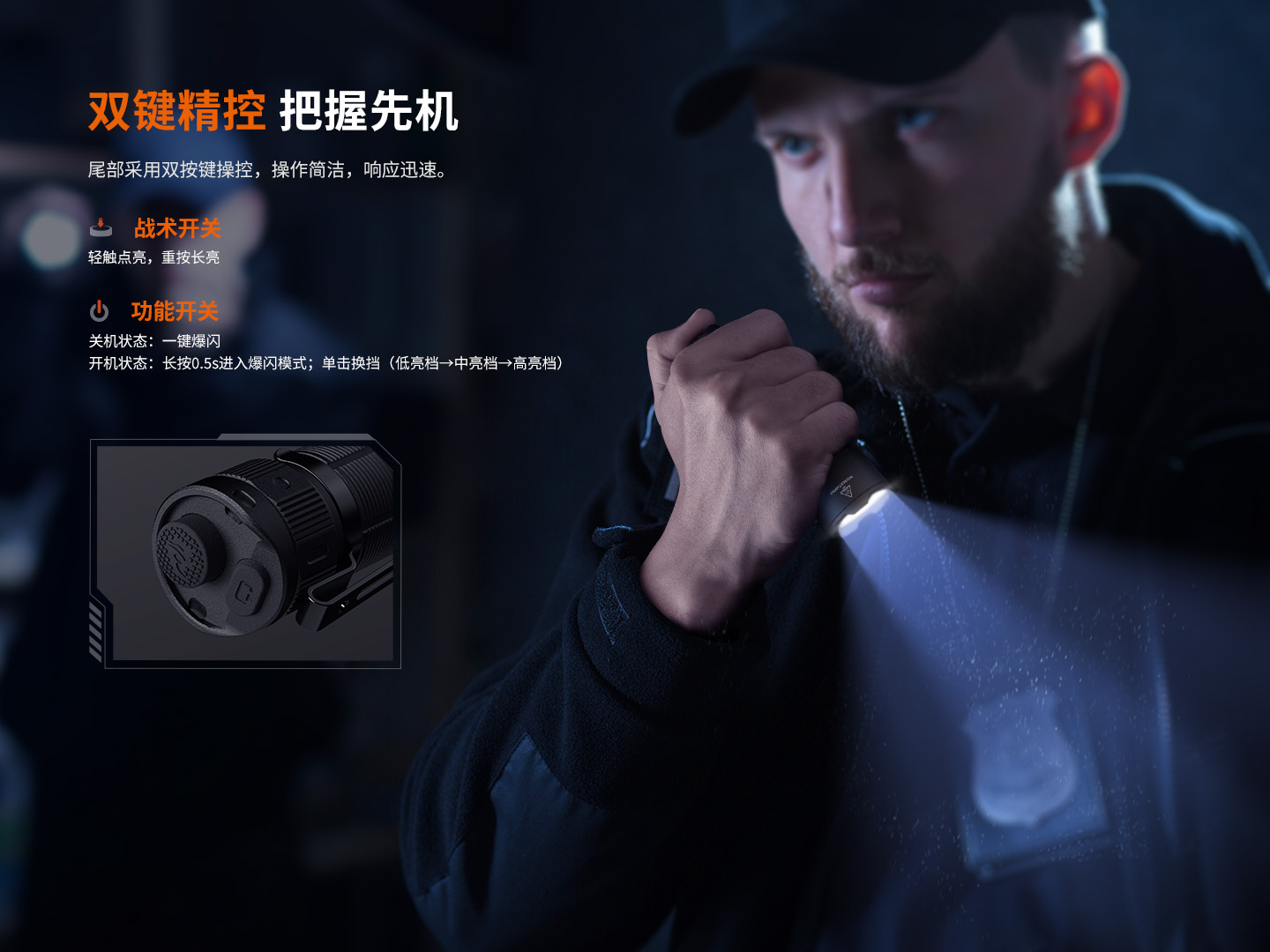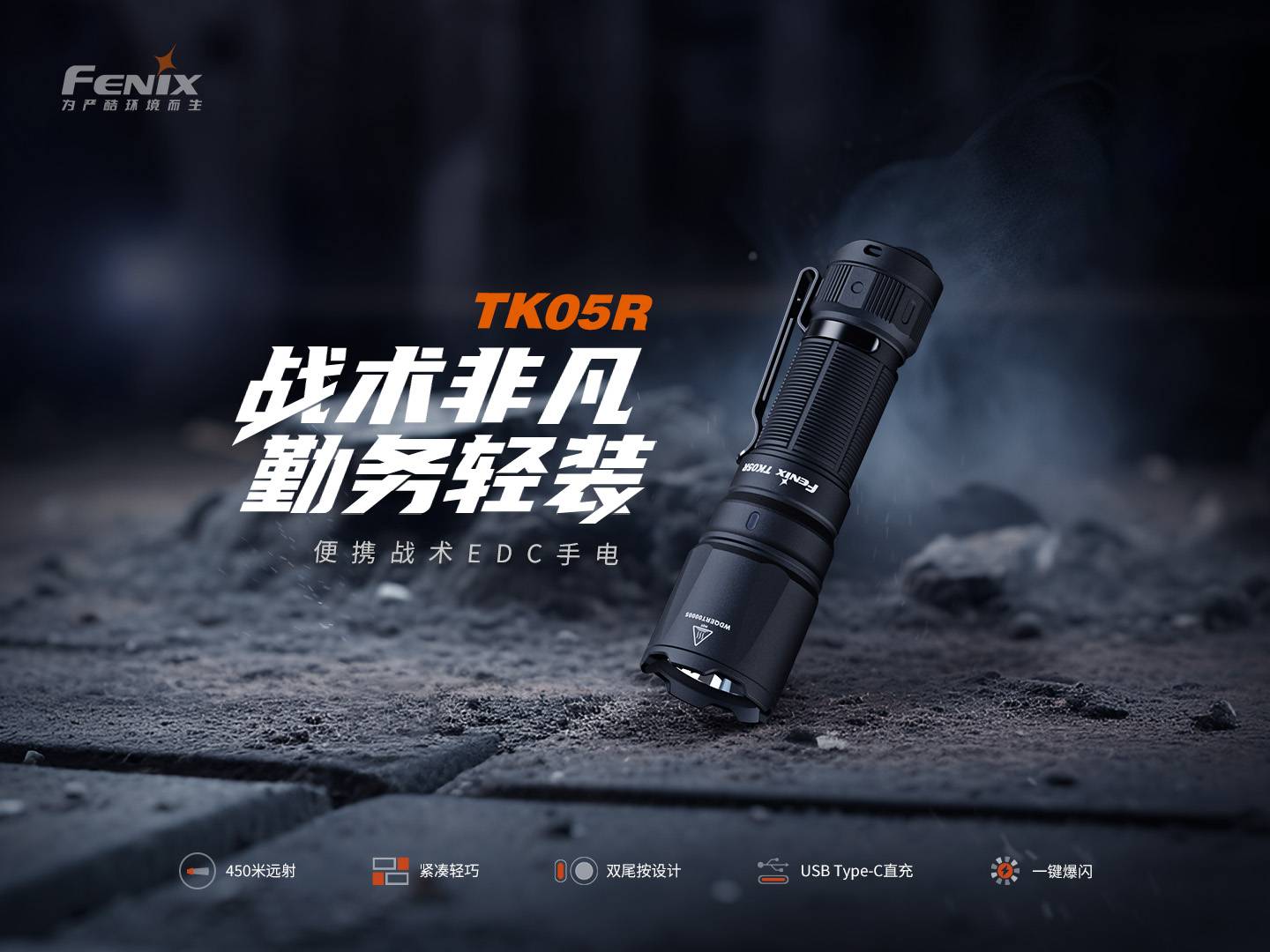TK05R 是一款采用精密工程设计的紧凑型高倍照明工具,具有精致的抛物面反射器。这种设计使光束集中,聚焦度高,可在弱光环境下实现卓越的远距离可视性,或穿透有色玻璃等光学障碍物,便于精确识别潜在威胁。其聚焦光束对于观察墙壁或路障等坚固障碍物以外的情况尤其有利,因为它能最大限度地减少对用户的光反射,保持夜间适应性视力。这款手电筒配有 1100mAh 可充电电池,可使用随附的 USB Type-C 连接线方便地为其供电。TK05R 拥有 IP68 防护等级和坚固耐用的 A6061-T6 铝质结构,可确保在各种场景下都能发挥可靠的性能。