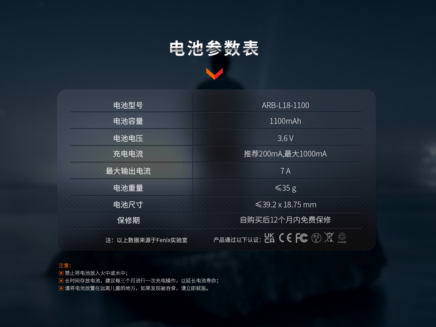 🤝Fenix ARB-L18-1100强光手电用18350锂电池 76