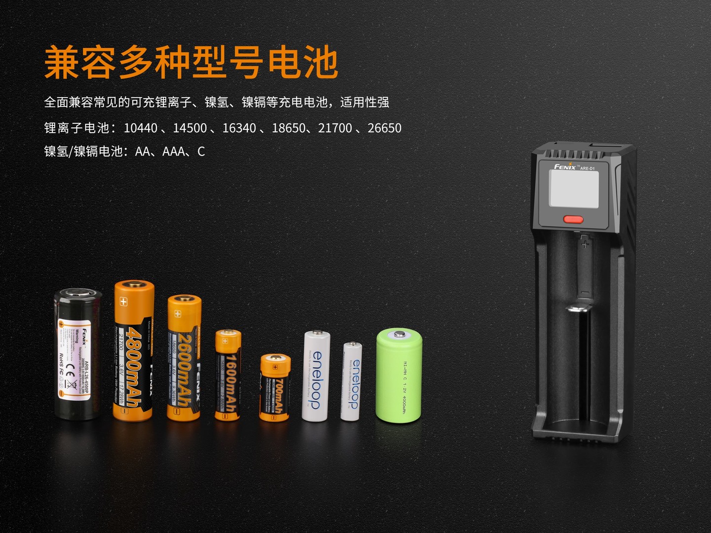 - 电池类型:10440、14500、16340、18650、21700、26650 AA/AAA/C