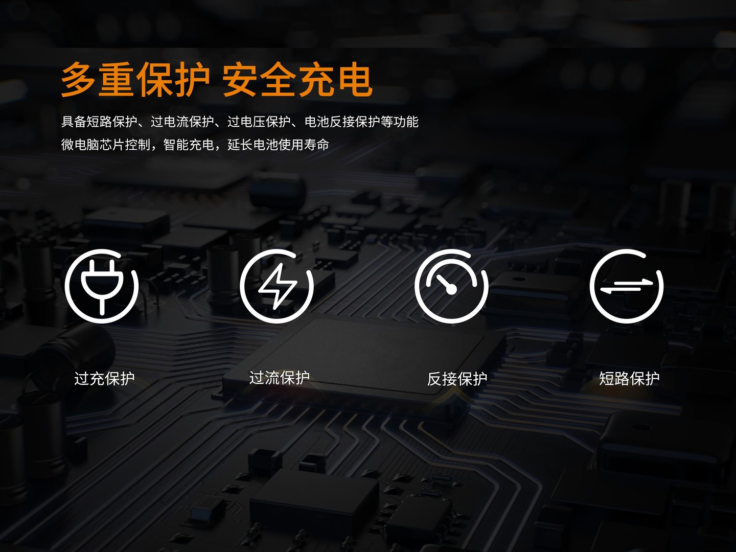 - 具备短路保护、过电流保护、过电压保护、电池反接保护功能