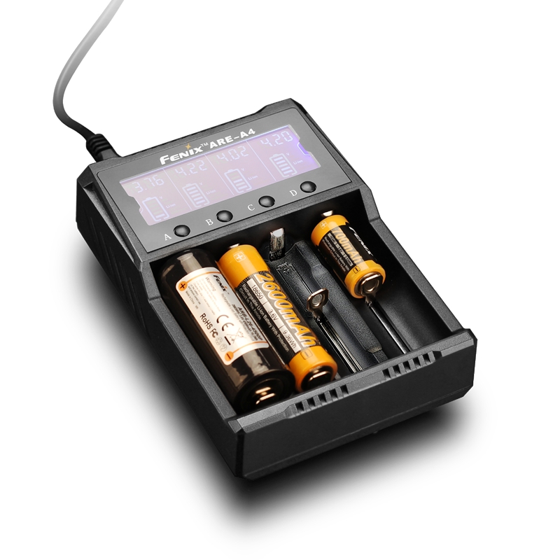 Fenix ARE-A4是一款四通道智能多功能充电器,兼容多种锂离子电池及镍氢/镍镉电池,高清LCD电子显示屏清晰显示充电状态及电量,同时支持车载充电,让您在移动中也能轻松给电池充电。