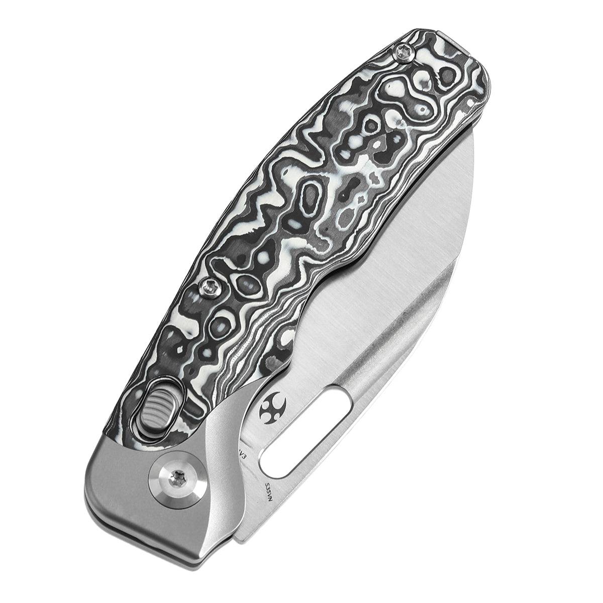 Vivid 采用由 CPM S35VN 或大马士革钢制成的 Wharncliffe 刀片,具有出色的精度、坚固的刺穿尖端和多功能的直尺,使其成为详细切割任务和日常携带的理想选择。 - 轮廓双材料手柄结构