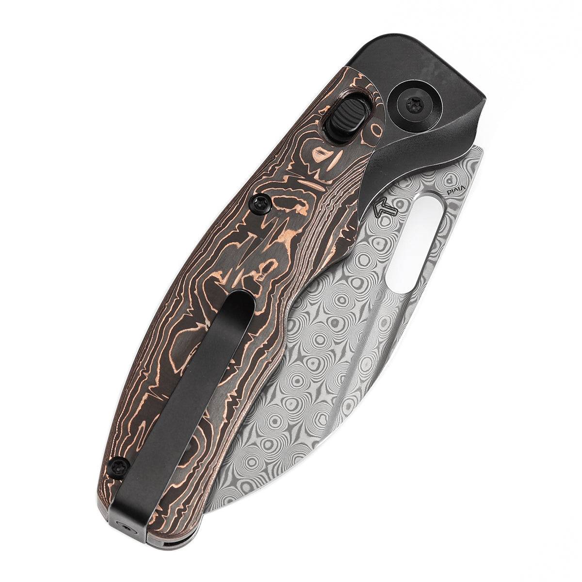 Vivid 采用由 CPM S35VN 或大马士革钢制成的 Wharncliffe 刀片,具有出色的精度、坚固的刺穿尖端和多功能的直尺,使其成为详细切割任务和日常携带的理想选择。 - 轮廓双材料手柄结构