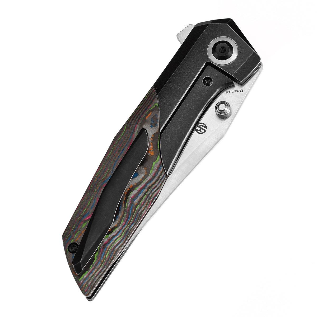 Deadite 采用符合人体工程学的手柄,由钛合金和碳纤维制成,采用双材料配置,旨在增强其视觉吸引力。光滑的轮廓设计提供了强度和耐用性,而材料的组合为刀增添了时尚、现代的美感。 - 多种部署选项