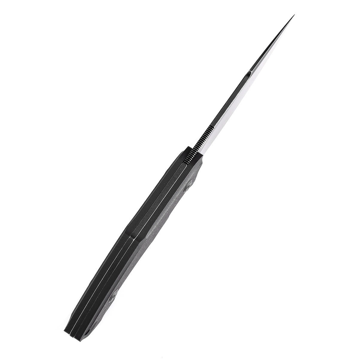 该刀采用钛合金手柄和多个倒角边缘,可无缝贴合手部。符合人体工程学的设计确保了舒适的握持感,在使用过程中感觉自然和安全。此外,G10 嵌体上的精细纹理增加了摩擦力,增强了整体抓地力,从而获得更牢固的握持。