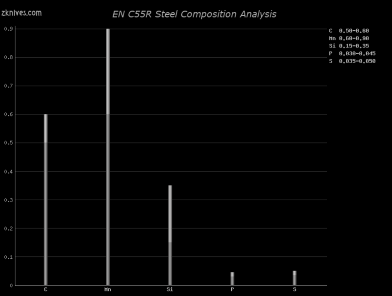 C55R(EN) - 简单碳钢。耐磨性较低,抗冲击性良好。适用于需要冲击强度的大型刀具或投掷刀具。