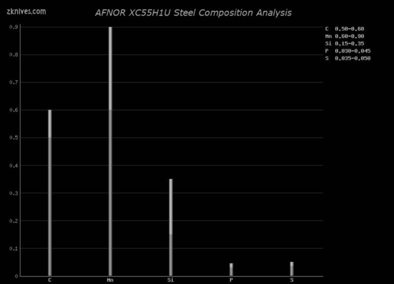 XC55H1U(AFNOR) - 简单碳钢。耐磨性低,抗震性不错。适用于需要冲击强度的大型或投掷刀。