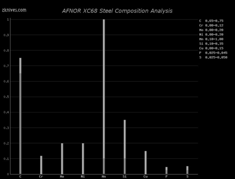 XC68(AFNOR) - 流行的简单碳钢。耐磨性低,抗震性不错。