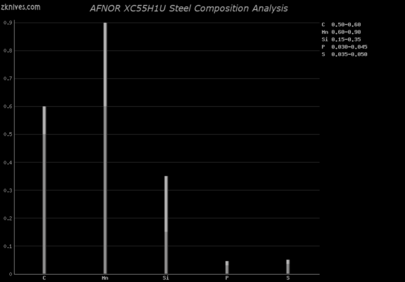 XC55H1U(AFNOR) - 简单碳钢。耐磨性低,抗震性不错。适用于需要冲击强度的大型或投掷刀。