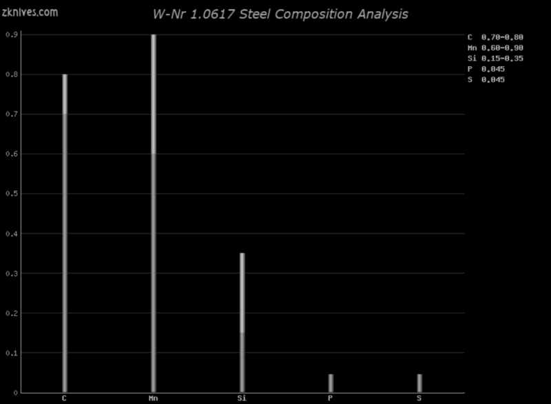 1.0617(W-Nr) - 相对简单的碳钢。如果热处理得当,可以产生相当不错的效果,一些刀具制造商在他们的廉价刀具中使用它,包括 Boker 文件夹。