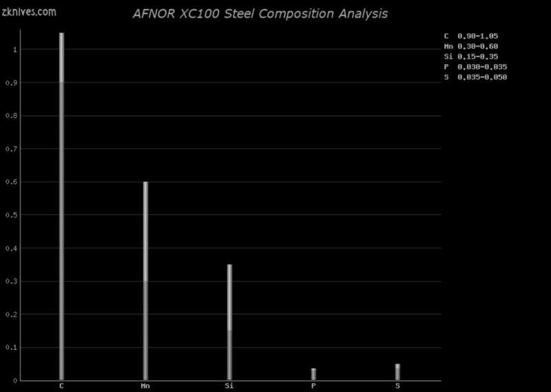 XC100(AFNOR) - 简单但流行的碳刀片钢,由于易于加工,因此深受刀具制造商的欢迎。有点像事实上的标准碳钢,很容易生锈。典型的硬度在 58-60HRC 范围内。一些制造商将其一直提高到 64-65HRC。