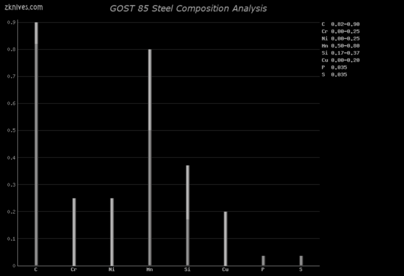 85(GOST) - AISI 1085 钢的俄罗斯类似物,与 1085 规格不同,允许微量的 Cr、Cu 和 Ni。