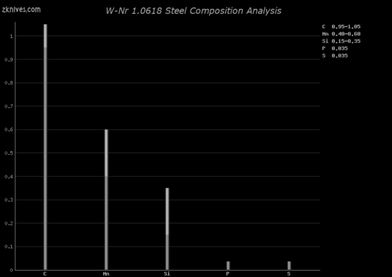 1.0618(W-Nr)- 简单但流行的碳刀片钢,由于易于加工,因此深受刀具制造商的欢迎。有点像事实上的标准碳钢,很容易生锈。典型的硬度在 58-60HRC 范围内。一些制造商将其一直提高到 64-65HRC。