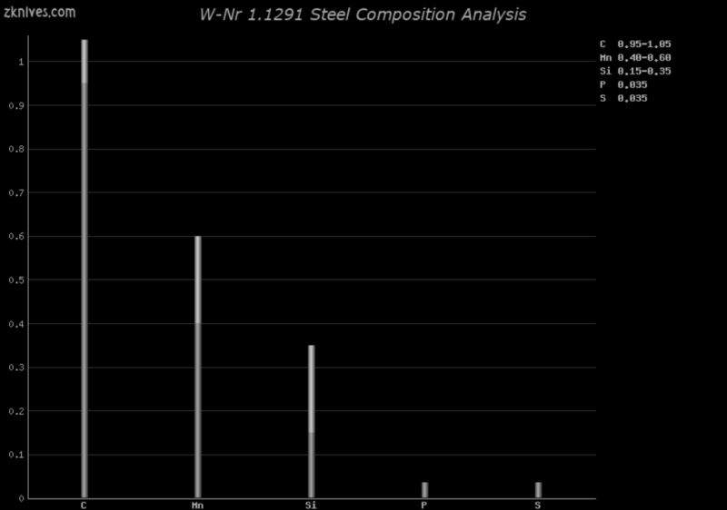 1.1291(W-Nr) - 简单但流行的碳刀片钢,由于易于加工,因此深受刀具制造商的欢迎。有点像事实上的标准碳钢,很容易生锈。典型的硬度在 58-60HRC 范围内。一些制造商将其一直提高到 64-65HRC。