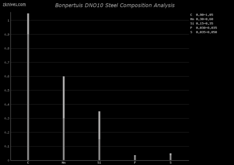 DNO10(Bonpertuis) - 简单但流行的碳刀片钢,由于易于加工,因此深受刀具制造商的欢迎。有点像事实上的标准碳钢,很容易生锈。典型的硬度在 58-60HRC 范围内。一些制造商将其一直提高到 64-65HRC。
