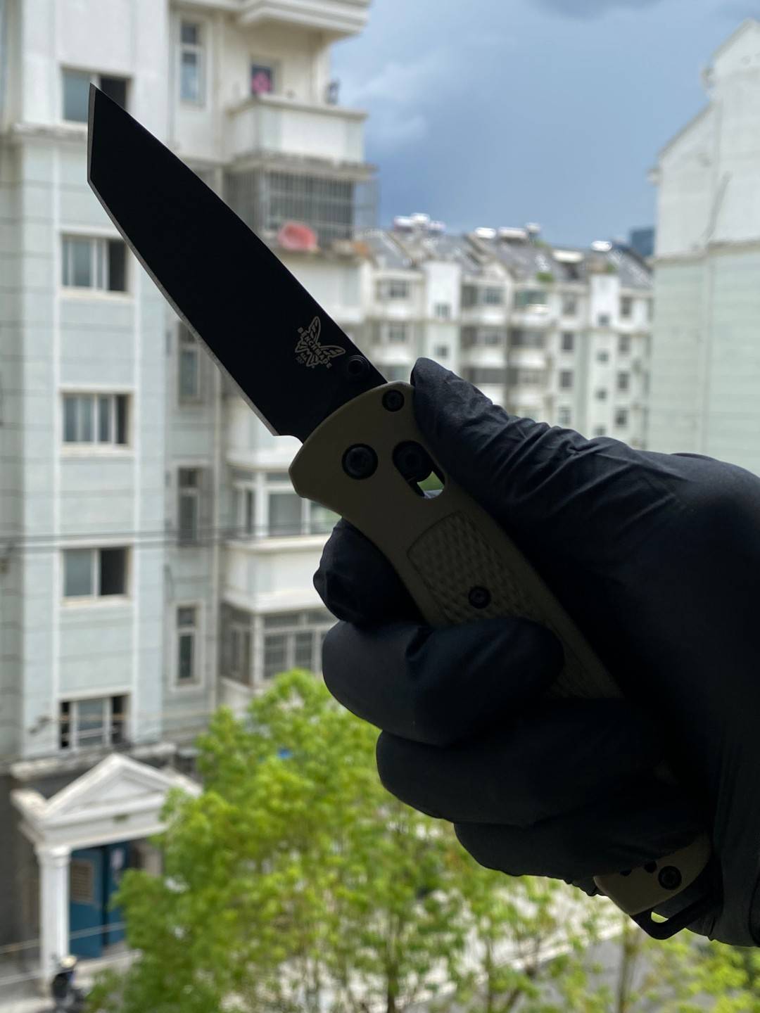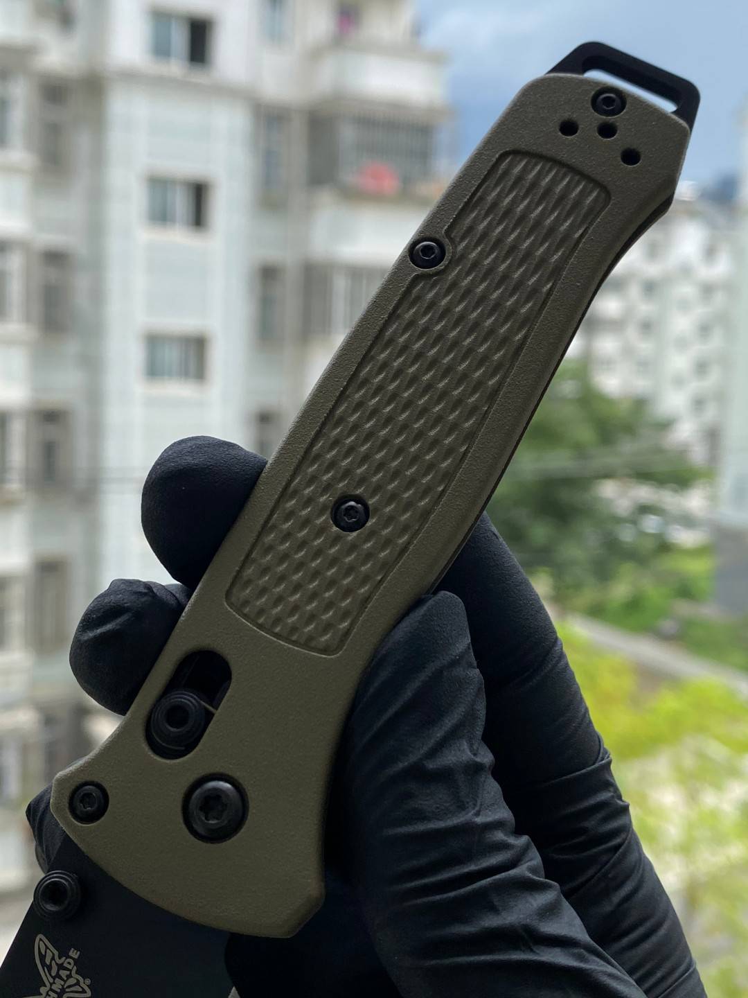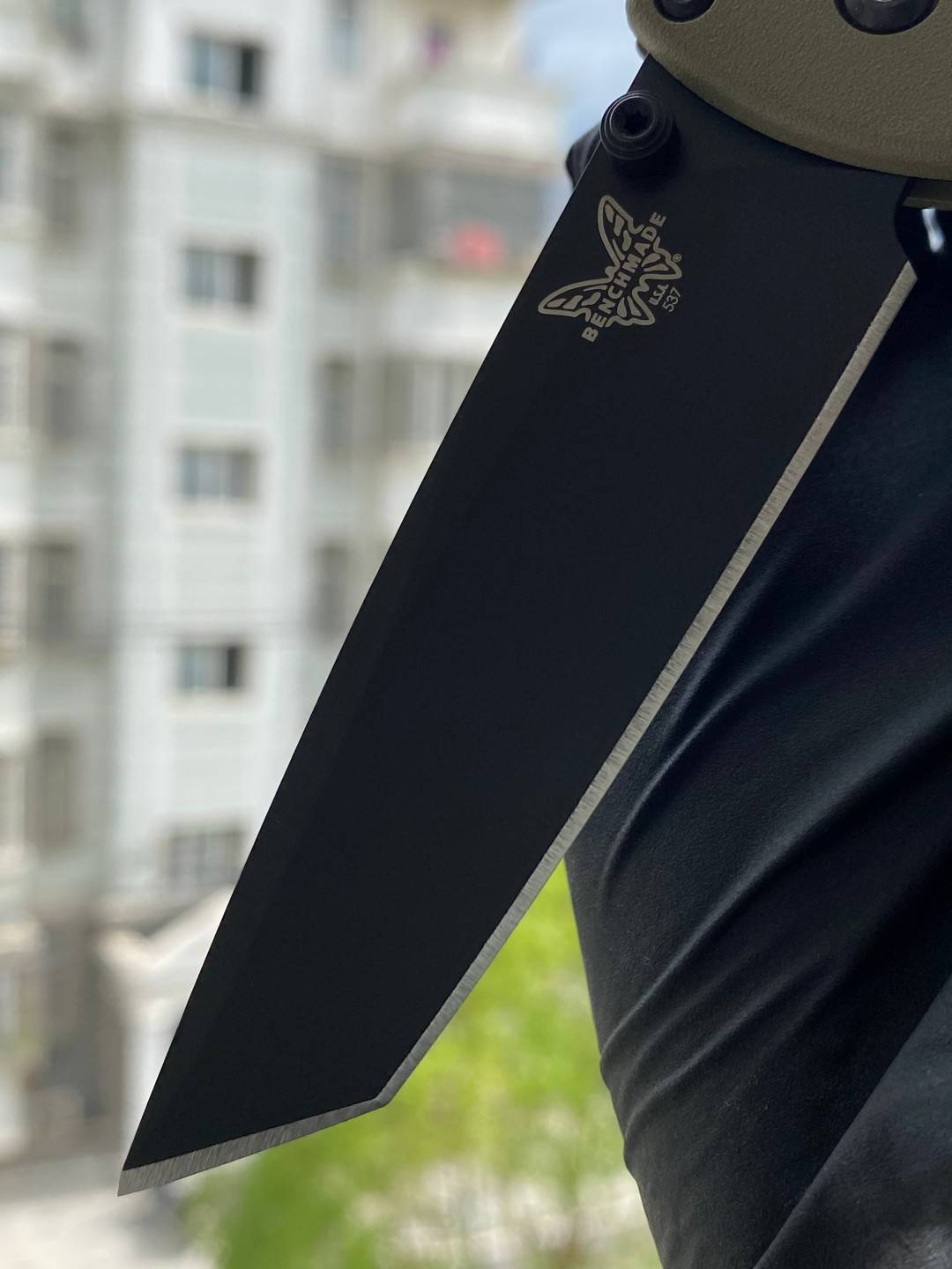与传统Bugout型号的滴尖刀片不同 ,537 的刀片模仿了日本轮廓的 tanto,而不是Benchmade在 Griptillian、AFO II 和 Barrage 等型号上使用的 tanto,这些型号具有直腹和清晰的主斜面。这种设计受到希望增强刀片尖端强度同时保持卓越切片性能的影响。即使增加了铝制柄头(在手柄尾端有一个挂绳槽),537 仍遵循Bugout设定的 2 盎司先例。
