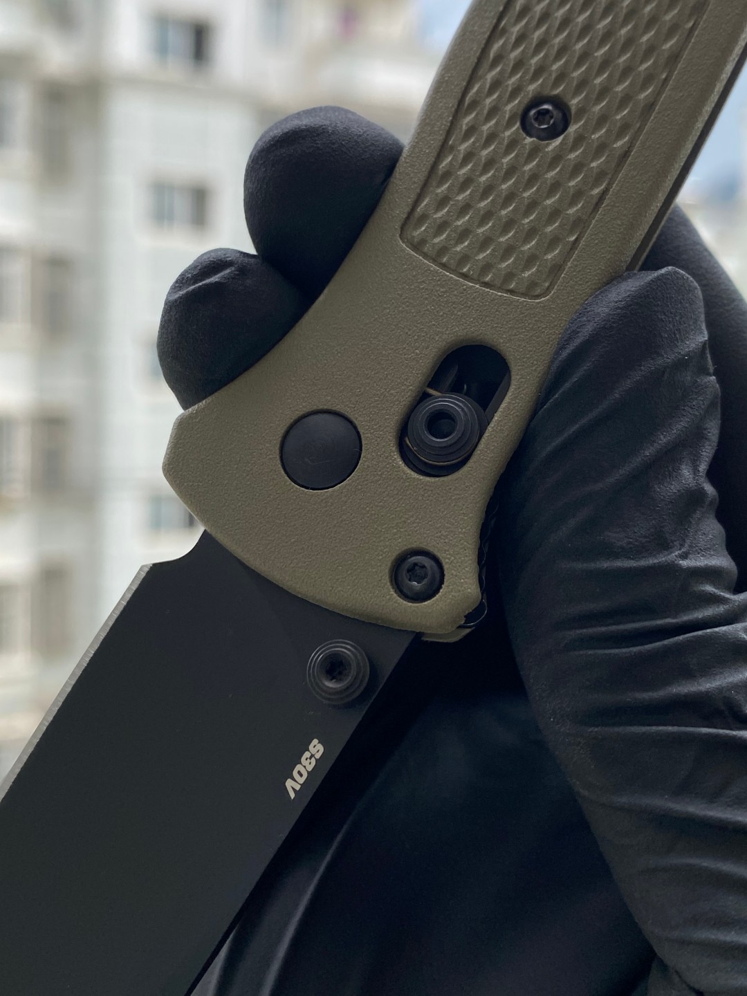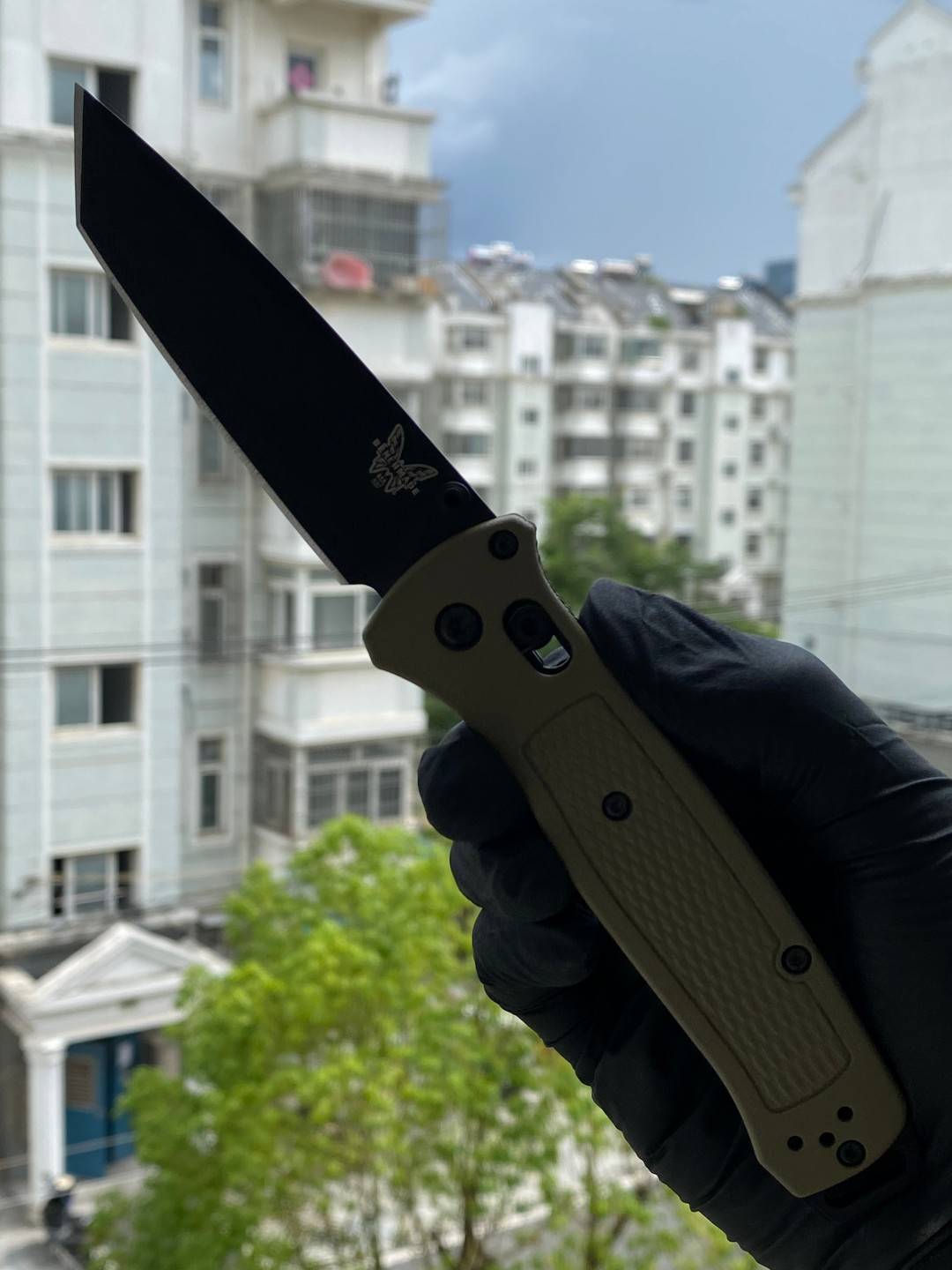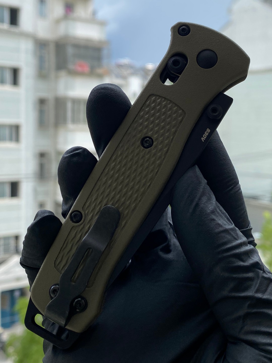 与传统Bugout型号的滴尖刀片不同 ,537 的刀片模仿了日本轮廓的 tanto,而不是Benchmade在 Griptillian、AFO II 和 Barrage 等型号上使用的 tanto,这些型号具有直腹和清晰的主斜面。这种设计受到希望增强刀片尖端强度同时保持卓越切片性能的影响。即使增加了铝制柄头(在手柄尾端有一个挂绳槽),537 仍遵循Bugout设定的 2 盎司先例。