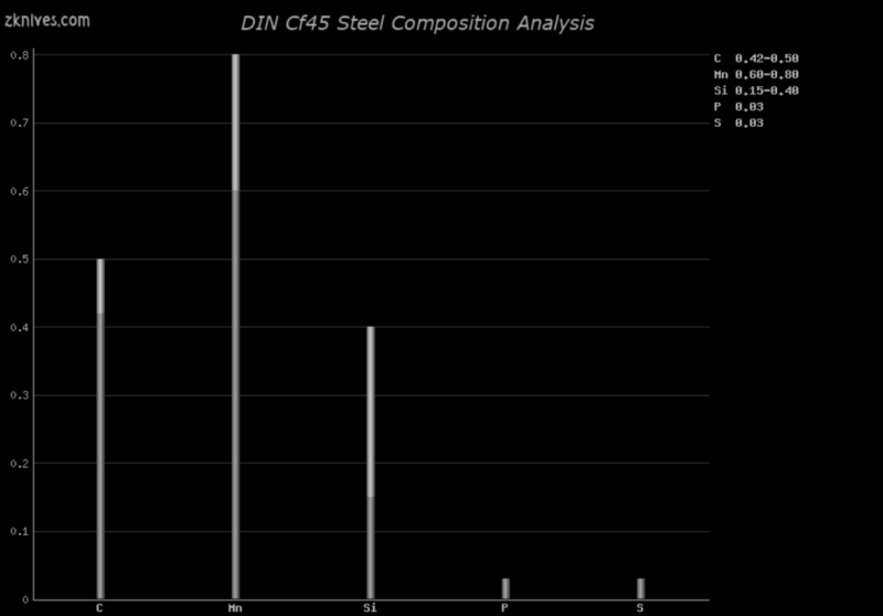 Cf45(DIN) - 我惊讶地发现 1045 实际上被用于刀具。AISI 10xx 系列的高碳版本更为普遍。好吧,当用于大型重型刀或飞刀时,它的性能仍然优于大多数廉价不锈钢刀片。