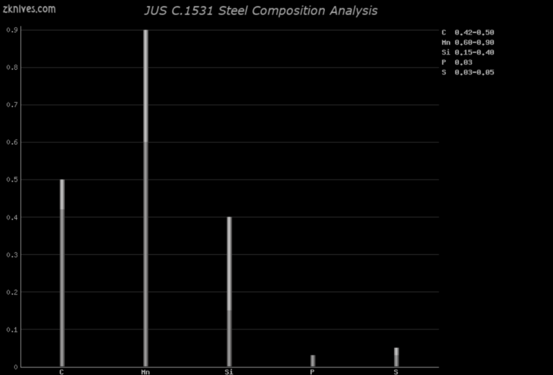C.1531(JUS) - 我惊讶地发现 1045 实际上被用于刀具。AISI 10xx 系列的高碳版本更为普遍。好吧,当用于大型重型刀或飞刀时,它的性能仍然优于大多数廉价不锈钢刀片。