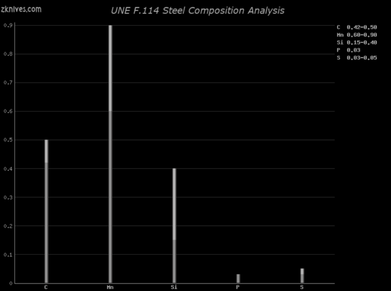 F.114(UNE) - 我惊讶地发现 1045 实际上被用于刀具。AISI 10xx 系列的高碳版本更为普遍。好吧,当用于大型重型刀或飞刀时,它的性能仍然优于大多数廉价不锈钢刀片。