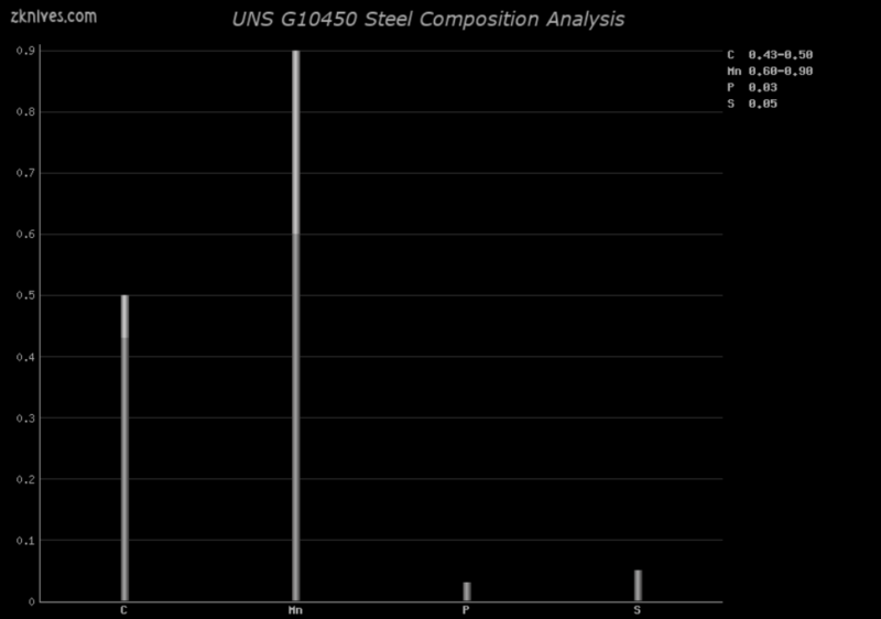 G10450(UNS) - 我很惊讶地发现 1045 实际上被用于刀具。AISI 10xx 系列的高碳版本更为普遍。好吧,当用于大型重型刀或飞刀时,它的性能仍然优于大多数廉价不锈钢刀片。