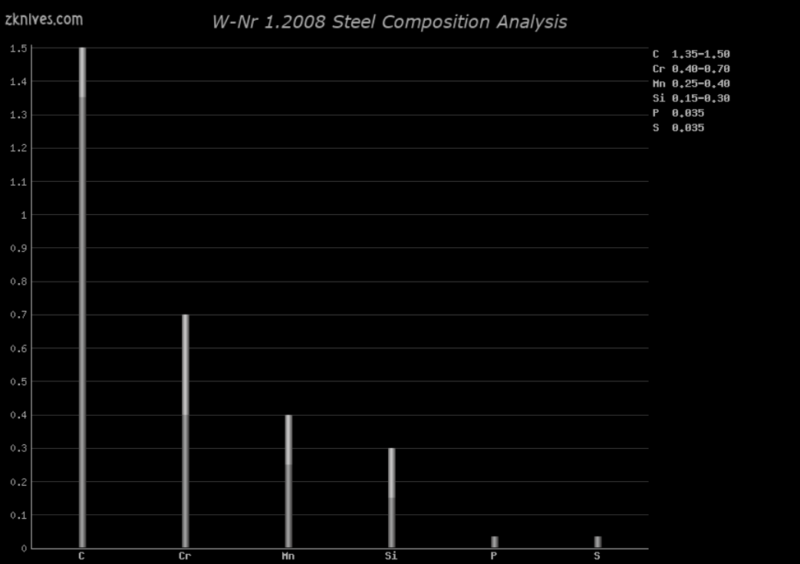 1.2008(W-Nr) - 低合金冷作工具钢。用于锉刀和其他切割工具。工作硬度高,但耐腐蚀性很差。经过适当的热处理后,可以制成非常好的美工刀片。