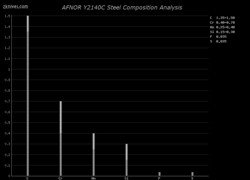 Y2140C(AFNOR) - 低合金冷作工具钢。用于锉刀和其他切割工具。工作硬度高,但耐腐蚀性很差。经过适当的热处理后,可以制成非常好的美工刀片。