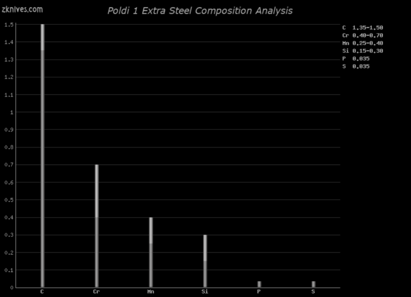 1 Extra(Poldi) - 低合金冷作工具钢。用于锉刀和其他切割工具。工作硬度高,但耐腐蚀性很差。经过适当的热处理后,可以制成非常好的美工刀片。