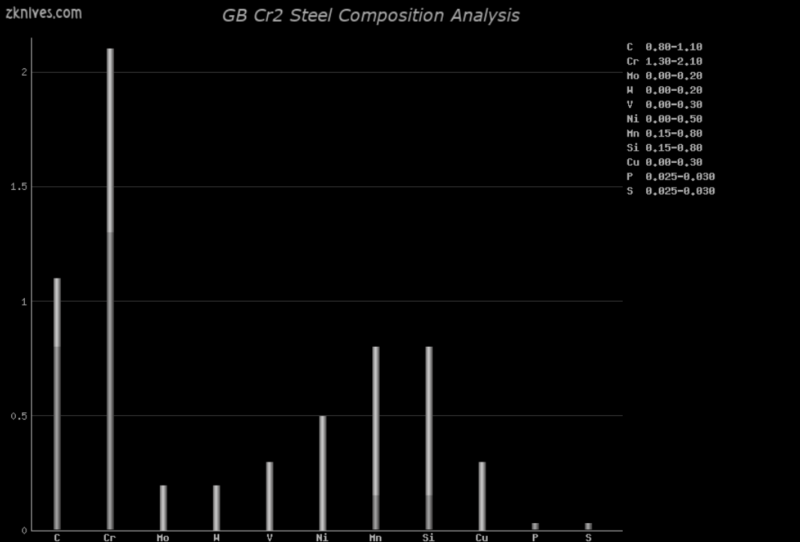 碳(C):0.80%-1.10% 铬(Cr):1.30%-2.10% 钼(Mo):0.00%-0.20% 钨(W):0.00%-0.20% 钒(V):0.00%-0.30% 镍(Ni):0.00%-0.50% 锰(Mn):0.15%-0.80% 硅(Si):0.15%-0.80% 铜(Cu):0.00%-0.30% 磷(P):0.025%-0.030% 硫(S):0.025%-0.030%