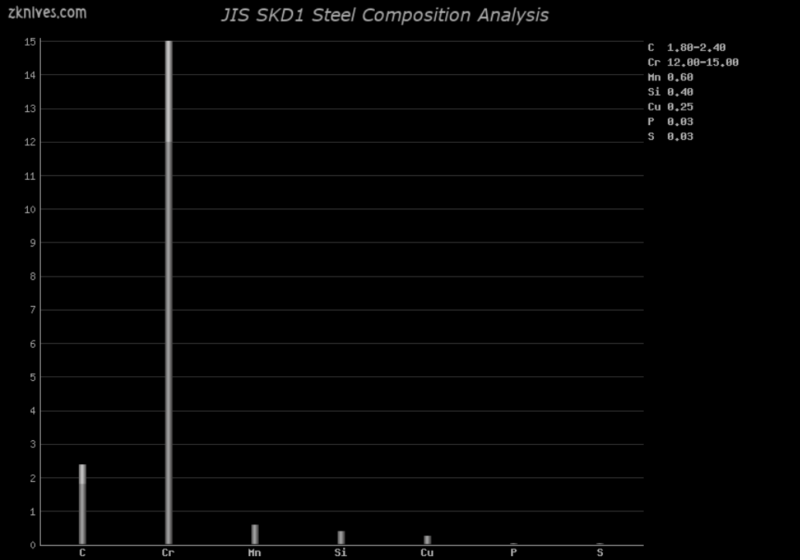 SKD1(JIS) - 相当于日本的 AISI D3 工具钢,但与美国不同,X210Cr12 既没有指定钨 (W) 也没有指定钒 (V),但含有微量的 Coper(Cu)。