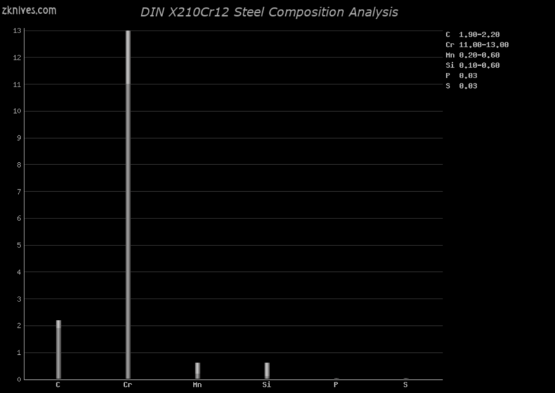 X210Cr12(DIN) - 德国相当于 AISI D3 工具钢,但与美国工具钢不同,X210Cr12 没有指定钨 (W) 和钒 (V)。