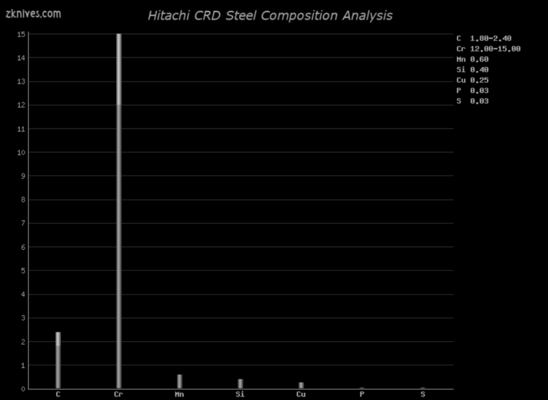 CRD(日立) - 相当于日本的 AISI D3 工具钢,但与美国不同的是,X210Cr12 既没有指定钨 (W) 也没有指定钒 (V),但含有微量的 Coper(Cu)。