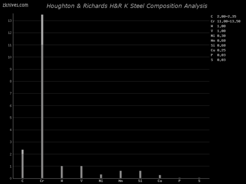 H&R K(Houghton & Richards) - 冷作工具钢。根据 SAE J438B-1970 标准规范,V、W 和 Mo 是可选的,而不是强制性的。当然,对于刀具来说,这 3 个要素最好在那里。
