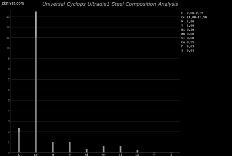 Ultradie1(Universal Cyclops) - 冷作工具钢。根据 SAE J438B-1970 标准规范,V、W 和 Mo 是可选的,而不是强制性的。当然,对于刀具来说,这 3 个要素最好在那里。