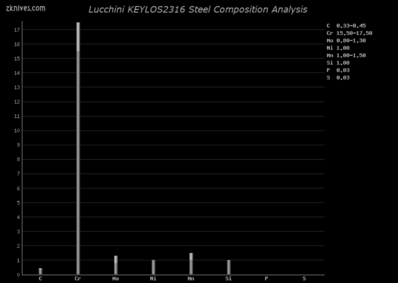 KEYLOS2316(Lucchini) - 中碳不锈钢,其中含有一些 Mo。用于廉价刀。