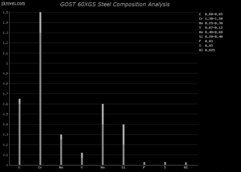 60XGS(GOST) - 合金工具钢。显然用于大刀。不常见。